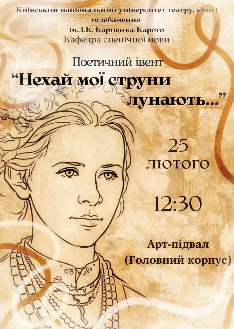 Кафедра сценічної мови запрошує на поетичний івент «Нехай мої струни лунають…»