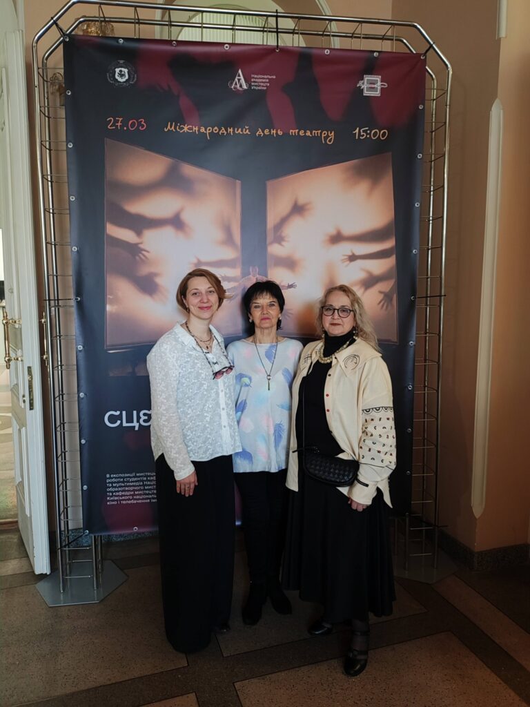 27 березня у Міжнародний день театру Велика зала Президії Національної академії мистецтв України стала виставковим простором, де поєдналися здобутки знаних фахівців-викладачів і молоді двох провідних мистецьких закладів України.