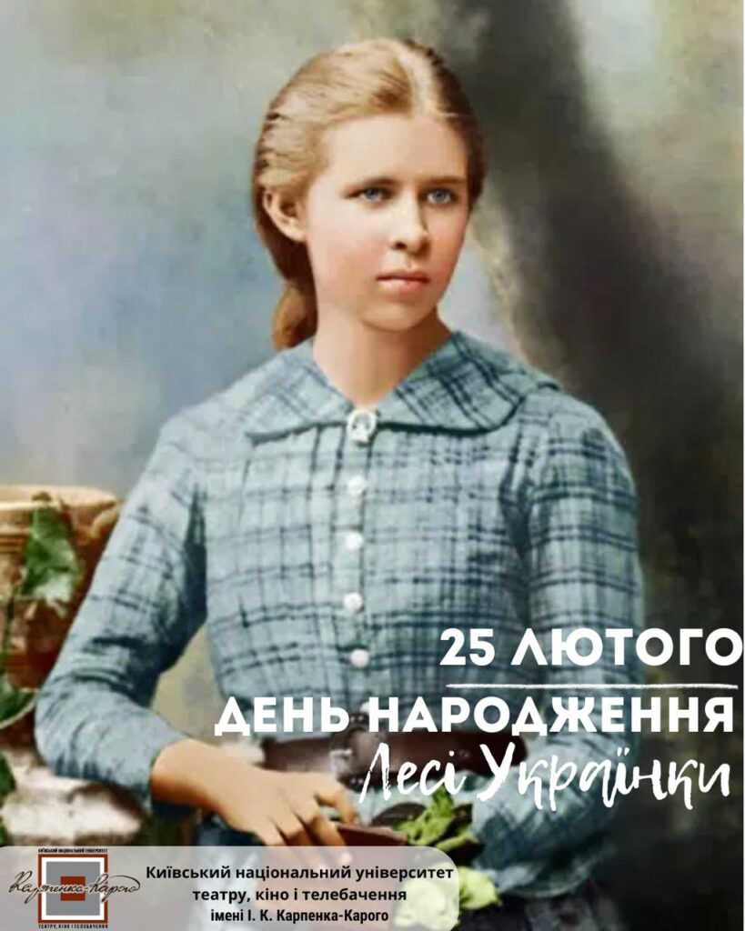 - КНУТКіТ імені І. К. Карпенка-Карого вшановує вагомий внесок Лесі Українки в розвиток національної культури в цілому і театру зокрема прем’єрою вистави «Лісова пісня», яка відбудеться сьогодні, в день народження великої доньки українського народу.