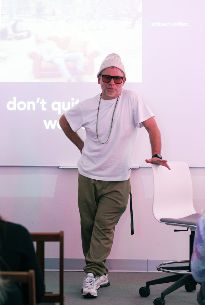 20 жовтня 2025 року студенти Київського національного університету театру, кіно і телебачення імені І. К. Карпенка-Карого зустрілися з Дарко Скульським — продюсером і співзасновником легендарного продакшену Radioaktive Films, що став міжнародною візитівкою України у світі реклами та кіновиробництва. Зустріч видалася по-справжньому натхненною: Дарко поділився історією свого професійного шляху — від перших кроків у 1990-х, коли доводилося «стукати в усі двері», до створення міжнародної компанії з офісами по всьому світу, з якою прагнуть співпрацювати провідні бренди та режисери світу. Його презентація охопила три десятиліття роботи Radioaktive Films — від перших рекламних відео до масштабних міжнародних проектів серед яких Apple, Audi, HBO, та інші. Студенти дізналися, секрети продюсерської майстерності, командну роботу та креативні підходи до вирішення виробничих викликів і головне як українські фахівці завойовують довіру глобального ринку. «Ключ до усього- це вирішення проблем. Не треба тільки дивитися на проблему, але й шукати креативні шляхи її вирішення», — наголосив Дарко Скульський. Тепла, неформальна атмосфера, поєднання професійного досвіду, гумору й щирості зробили зустріч у просторі Sens Hub по-справжньому натхненною.
