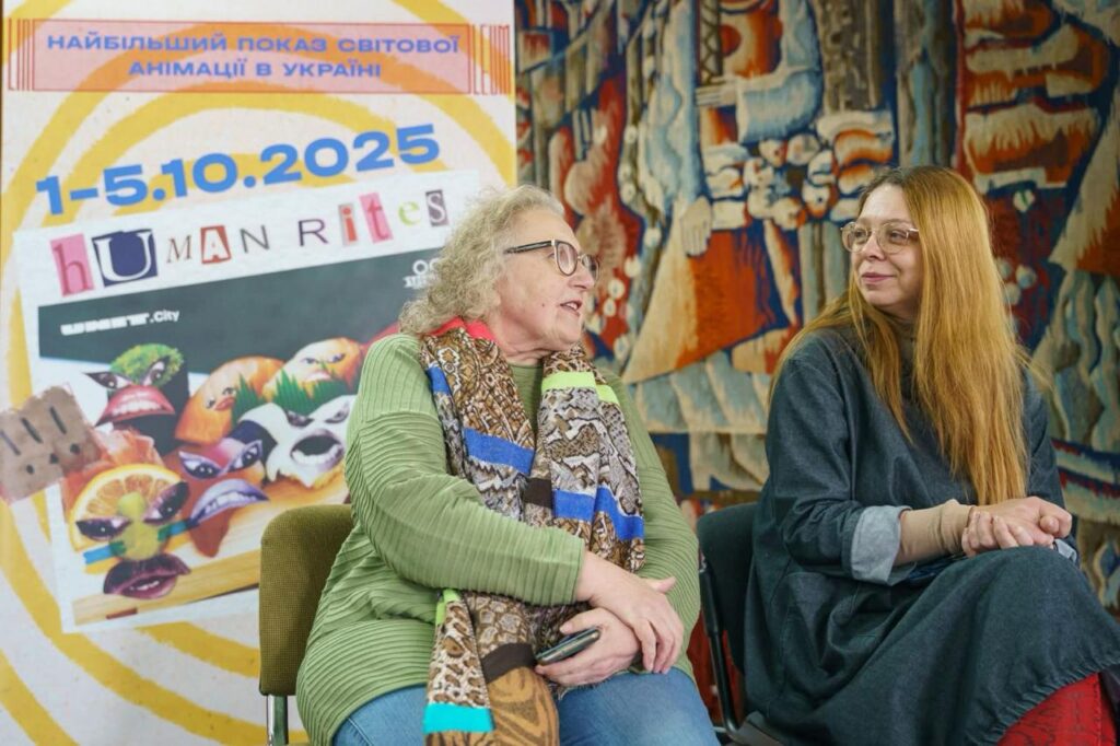 Карина Ткачова, студентка 4 курсу спеціальності «Організація кінотелевиробництва» (майстерня Кирила Горобця), долучилася до дискусії та наголосила на важливості висвітлення здобутків української анімації у сучасних умовах і необхідності активної співпраці студентської спільноти Університету з фестивалем LINOLEUM.