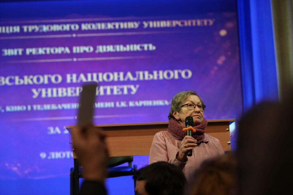 Після завершення звіту голова Конференції трудового колективу Університету Олена Оніщенко – за відсутності запитань із залу – винесла річний звіт ректора на голосування. Делегати конференції трудового колективу Київського національного університету театру, кіно і телебачення імені І. К. Карпенка-Карого схвалили звіт одноголосно.
