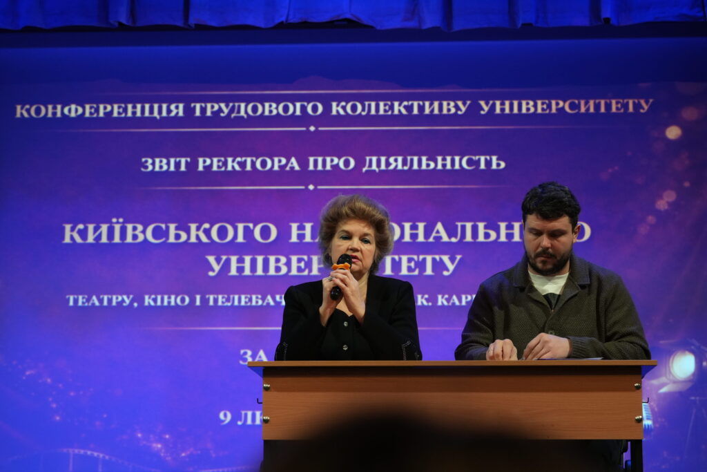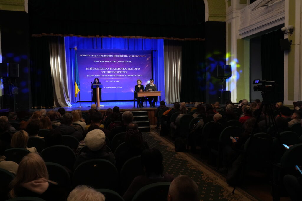 9 лютого 2026 року в залі Навчального театру Київського національного університету театру, кіно і телебачення імені І. К. Карпенка-Карого відбулась Конференція трудового колективу, на якій ректор КНУТКіТ І. С. Кочарян представила звіт про діяльність навчального закладу за 2025 рік.