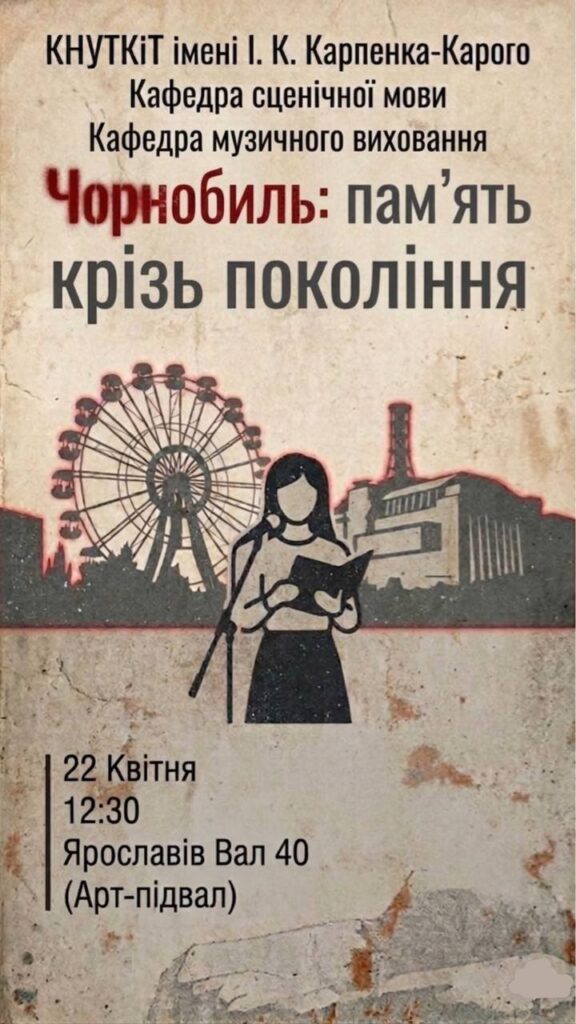 До 40-х роковин Чорнобильської катастрофи. Запрошуємо на мистецьку акцію «Чорнобиль: пам’ять крізь покоління»