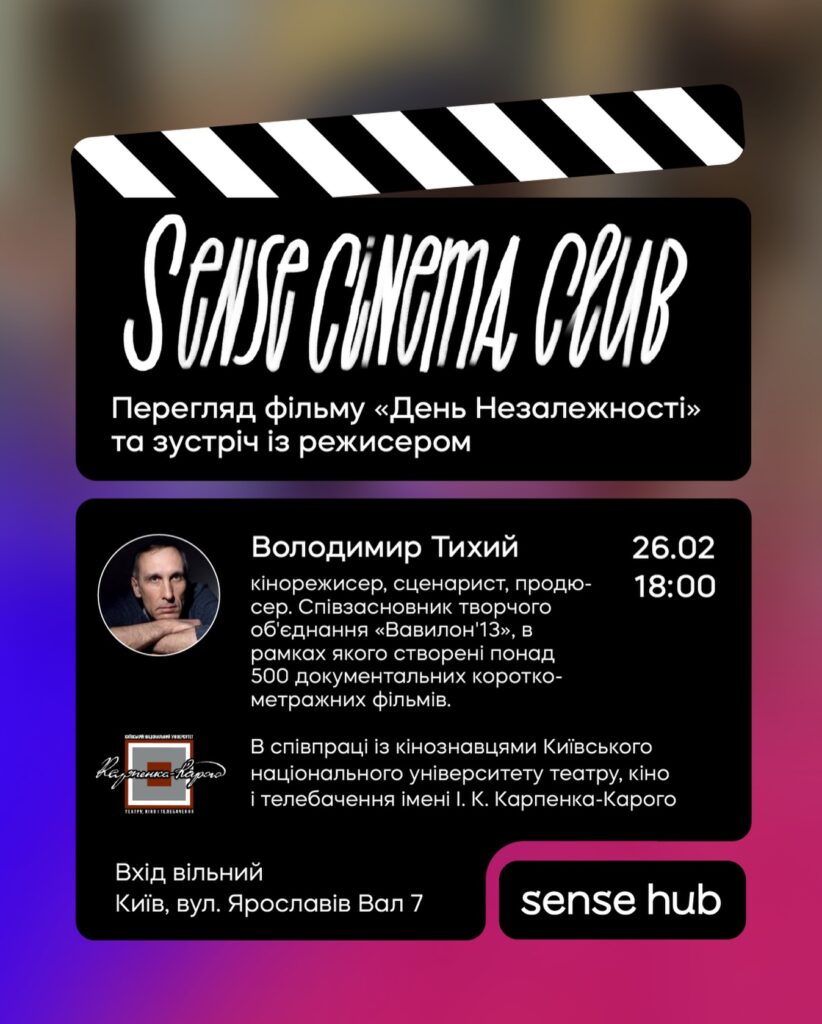 26 лютого у Sense Hub Kyiv дивимось документальний фільм Володимира Тихого про один день — 24 серпня 2022 року, коли Україна святкувала 31-шу річницю незалежності під час повномасштабного вторгнення.