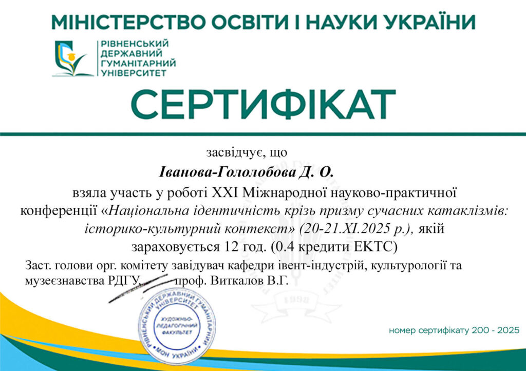 Структура 🢒 Сертифікати участі у наукових заходах кафедри мистецтва театру ляльок