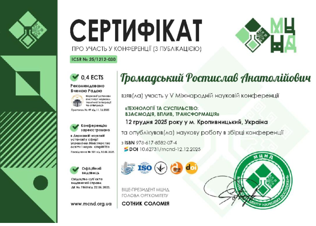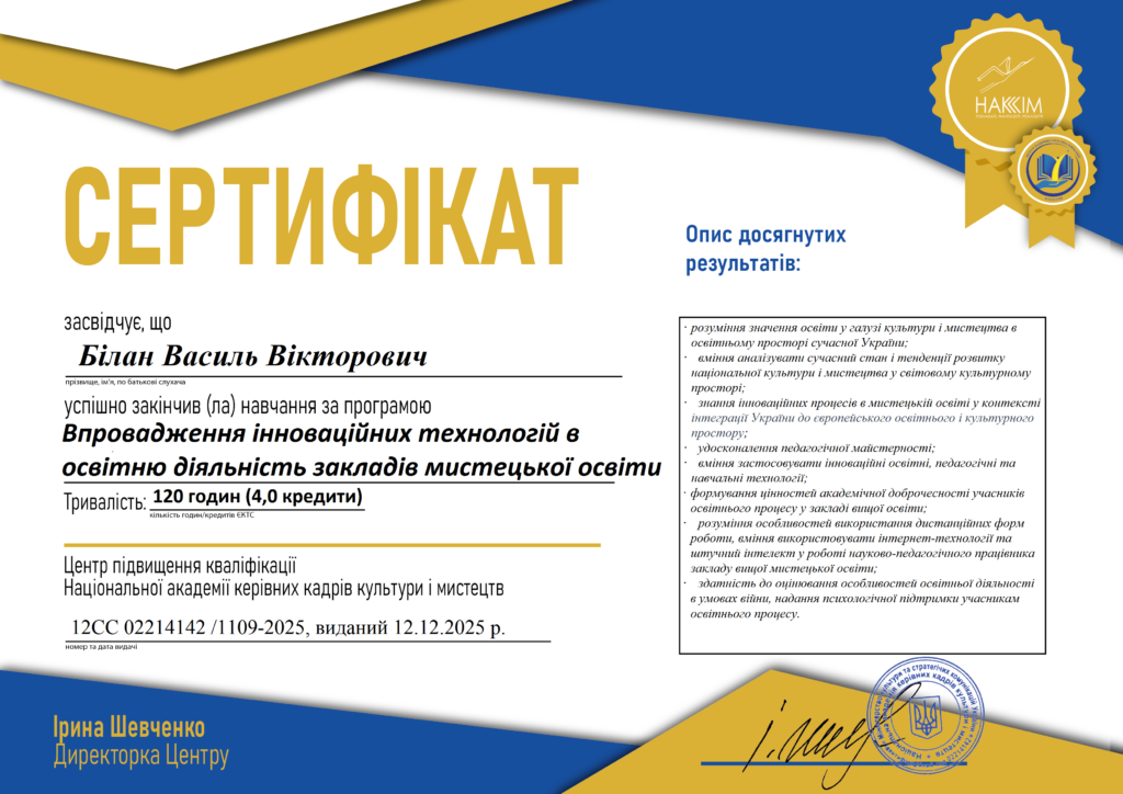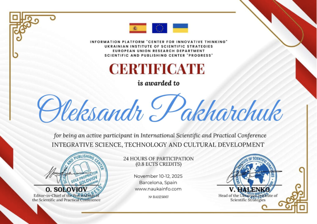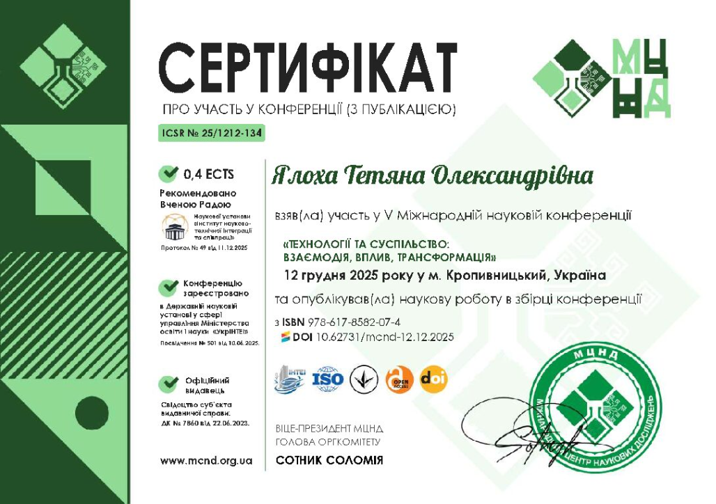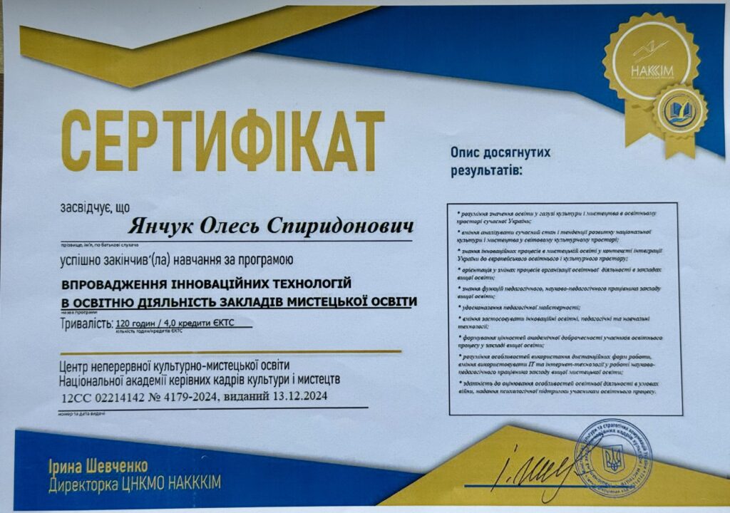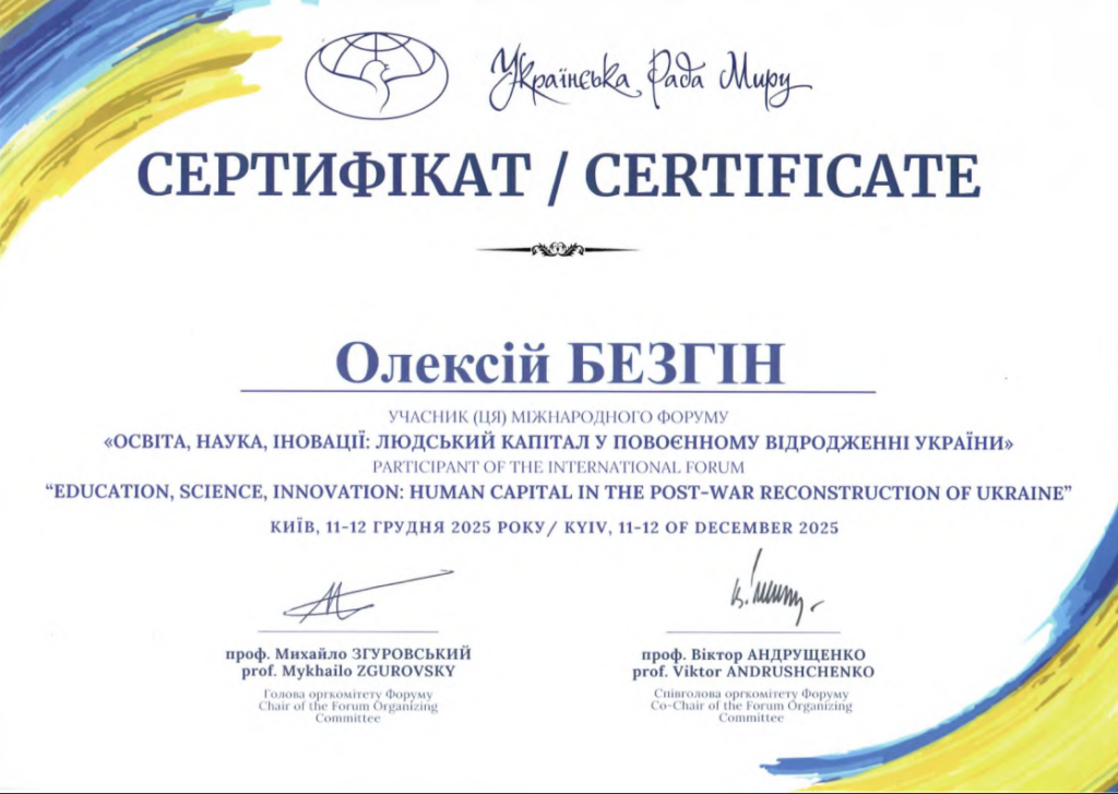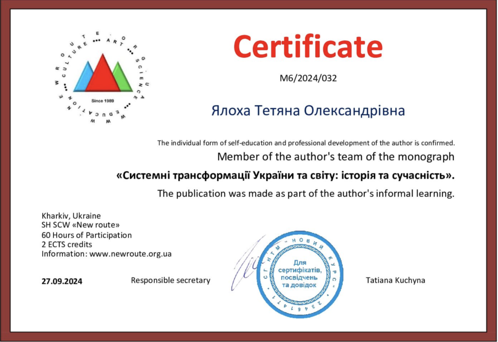 Структура 🢒 Сертифікати участі у наукових заходах кафедри організації театральної справи імені І. Д. Безгіна