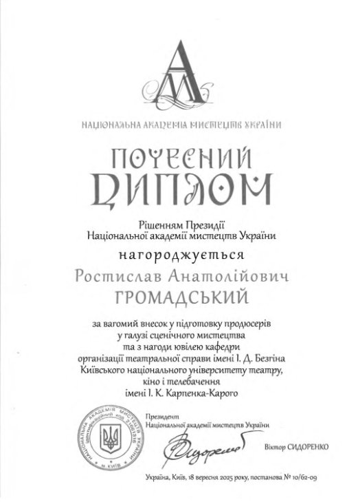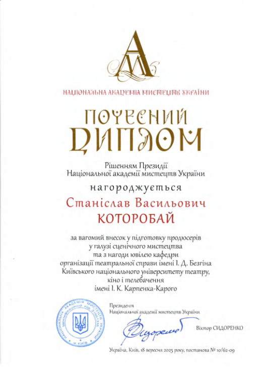 Сертифікати участі у наукових заходах кафедри організації театральної справи імені І. Д. Безгіна