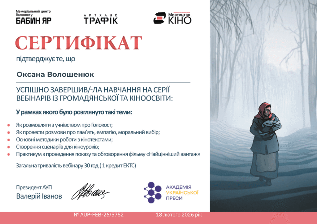 Структура 🢒 Сертифікати участі у наукових заходах кафедри кінознавства