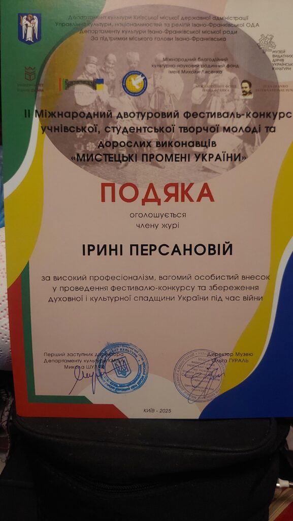 10 жовтня 2025 року у Київському Будинку вчених відбувся ІІ Міжнародний двотуровий фестиваль-конкурс учнівської, студентської творчої молоді та дорослих виконавців «Мистецькі промені України».